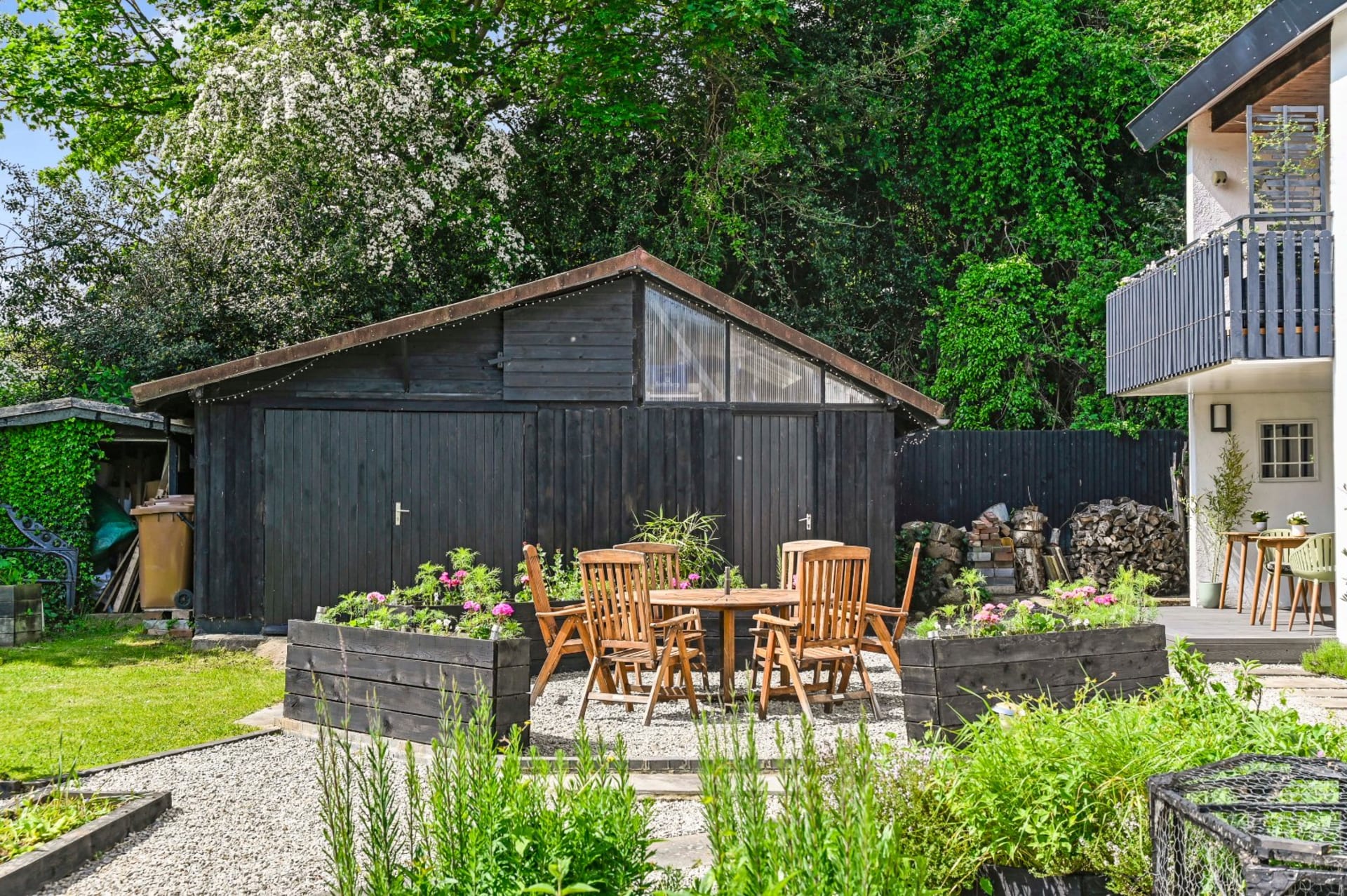 - Large integral garage/workshop, ample parking space, and gated vehicular access to the side.