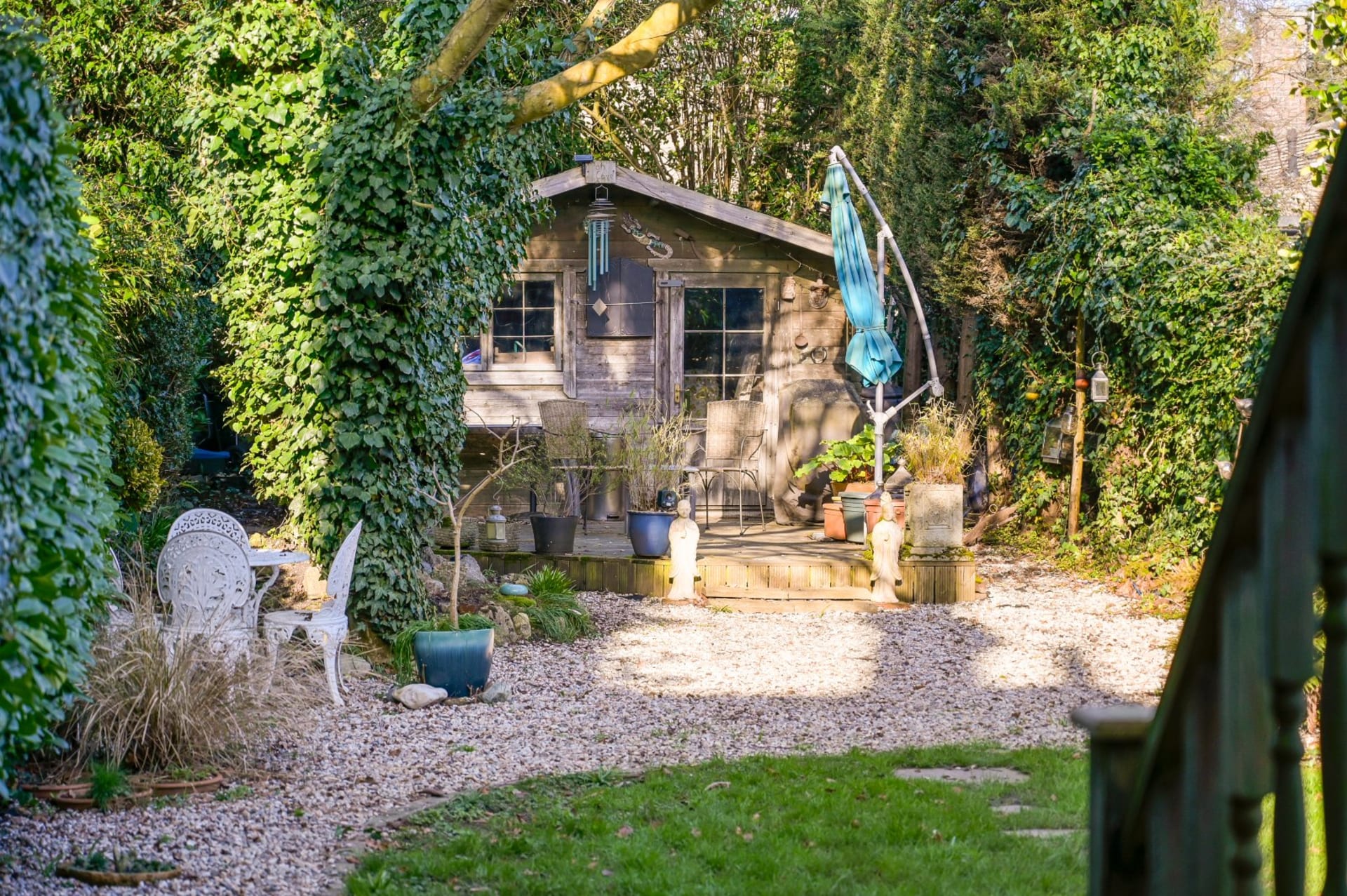 - Versatile accommodation across three floors, mature rear garden with workshop