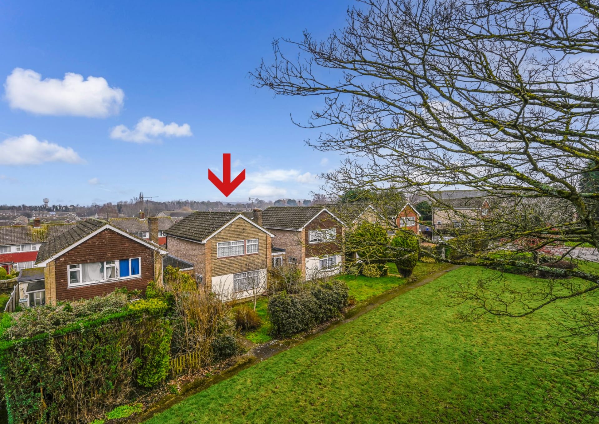 A three bedroom detached house with a garage and parking to the rear of the plot, nicely set back from the Hythe Road overlooking a green to the front, with excellent access to local schooling, Ashford International, and the M20 motorway.