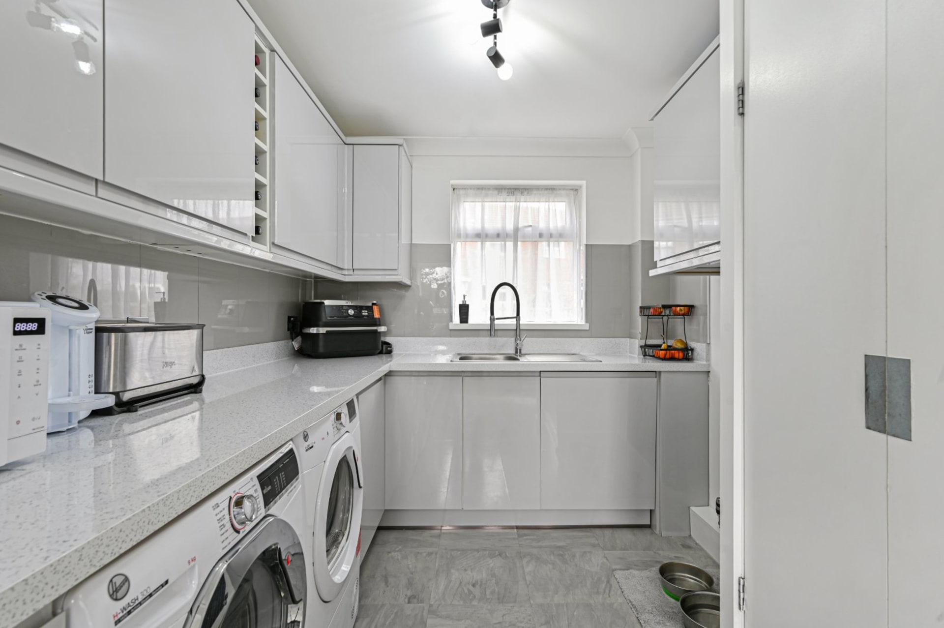 - Contemporary kitchen with built-in appliances & breakfast bar
