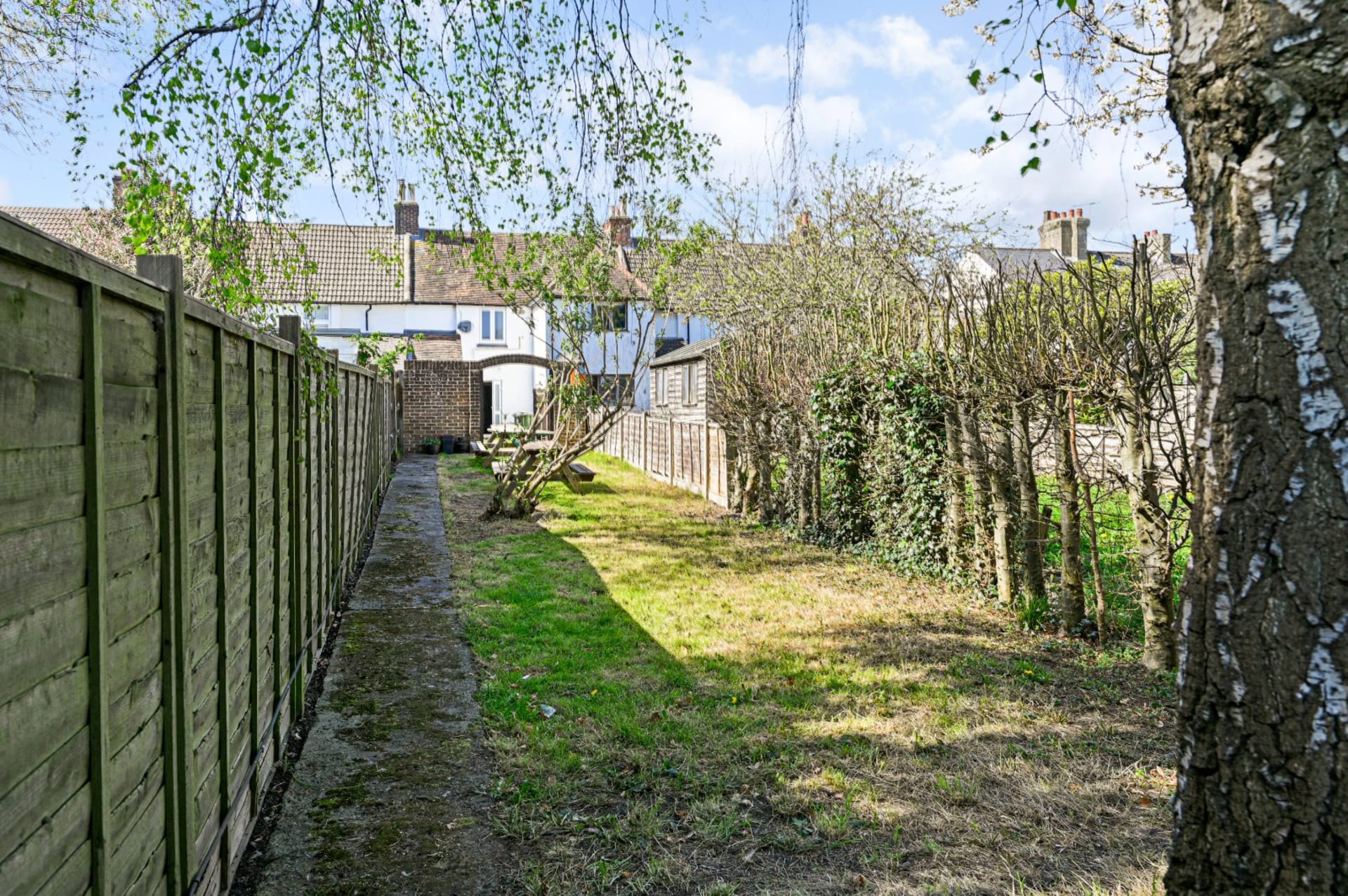 This two-bedroom terrace property offers a cottage feel in the heart of Ashford with good living accommodation throughout, accompanied by a 160 ft garden. No onward chain.