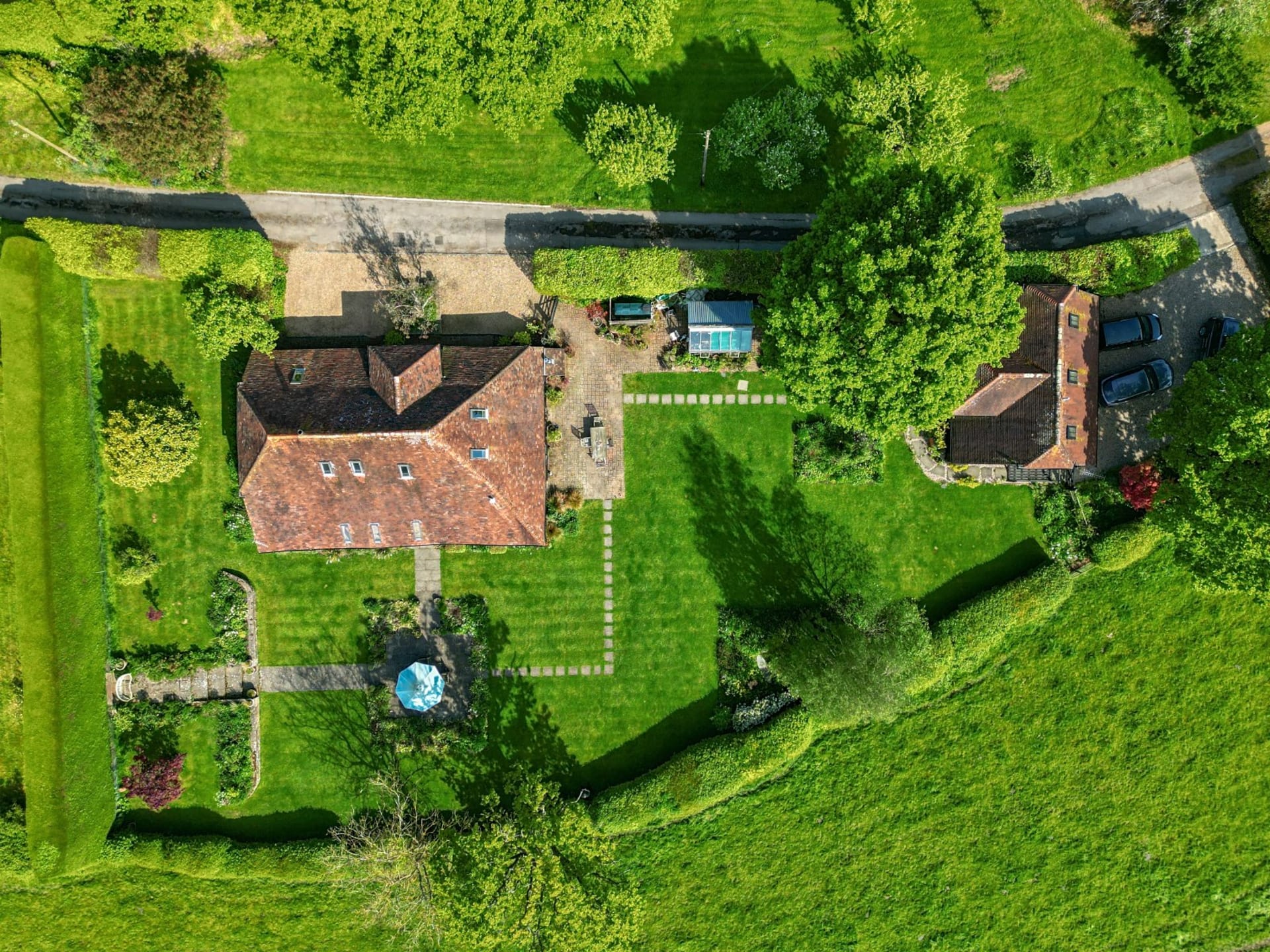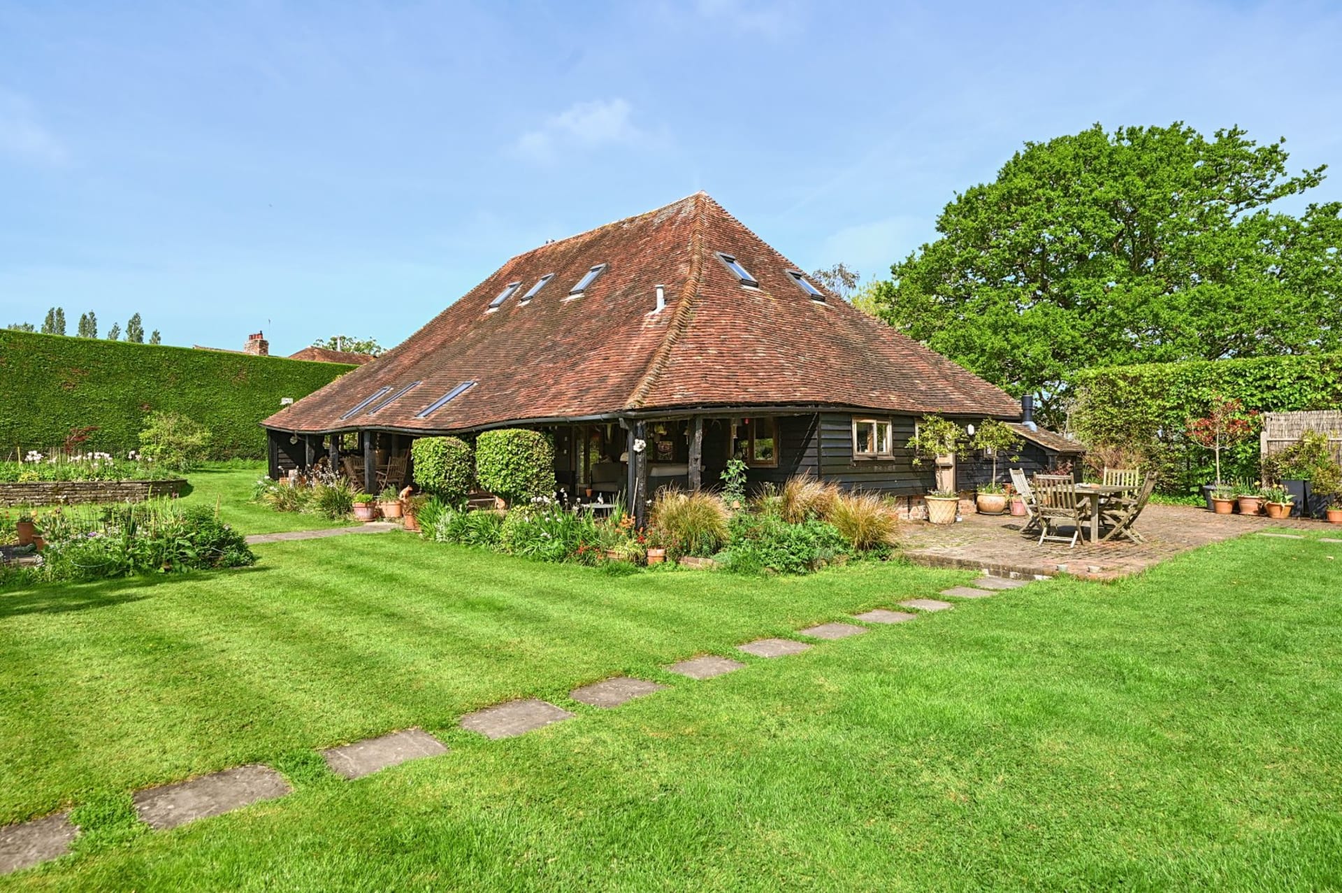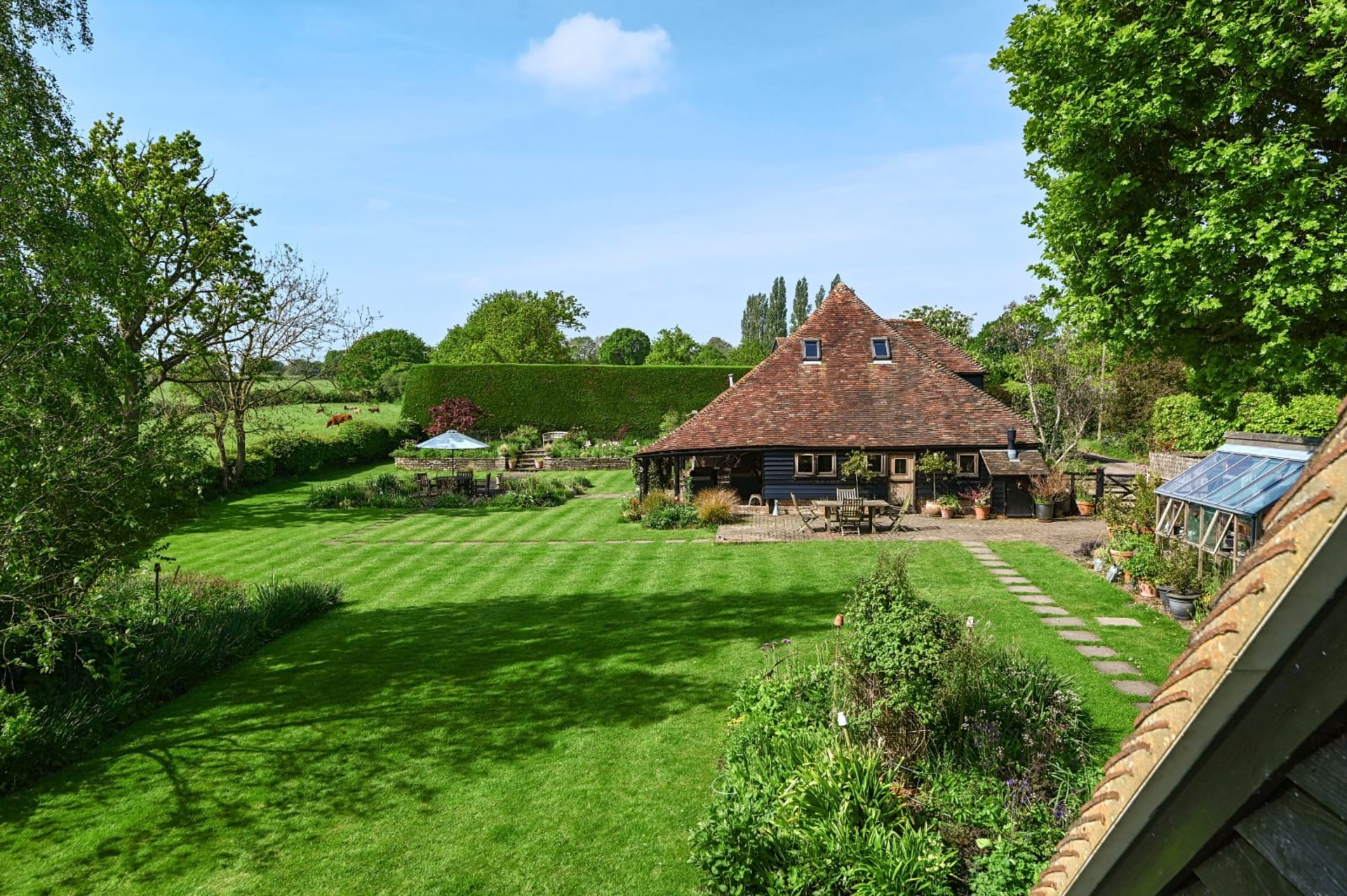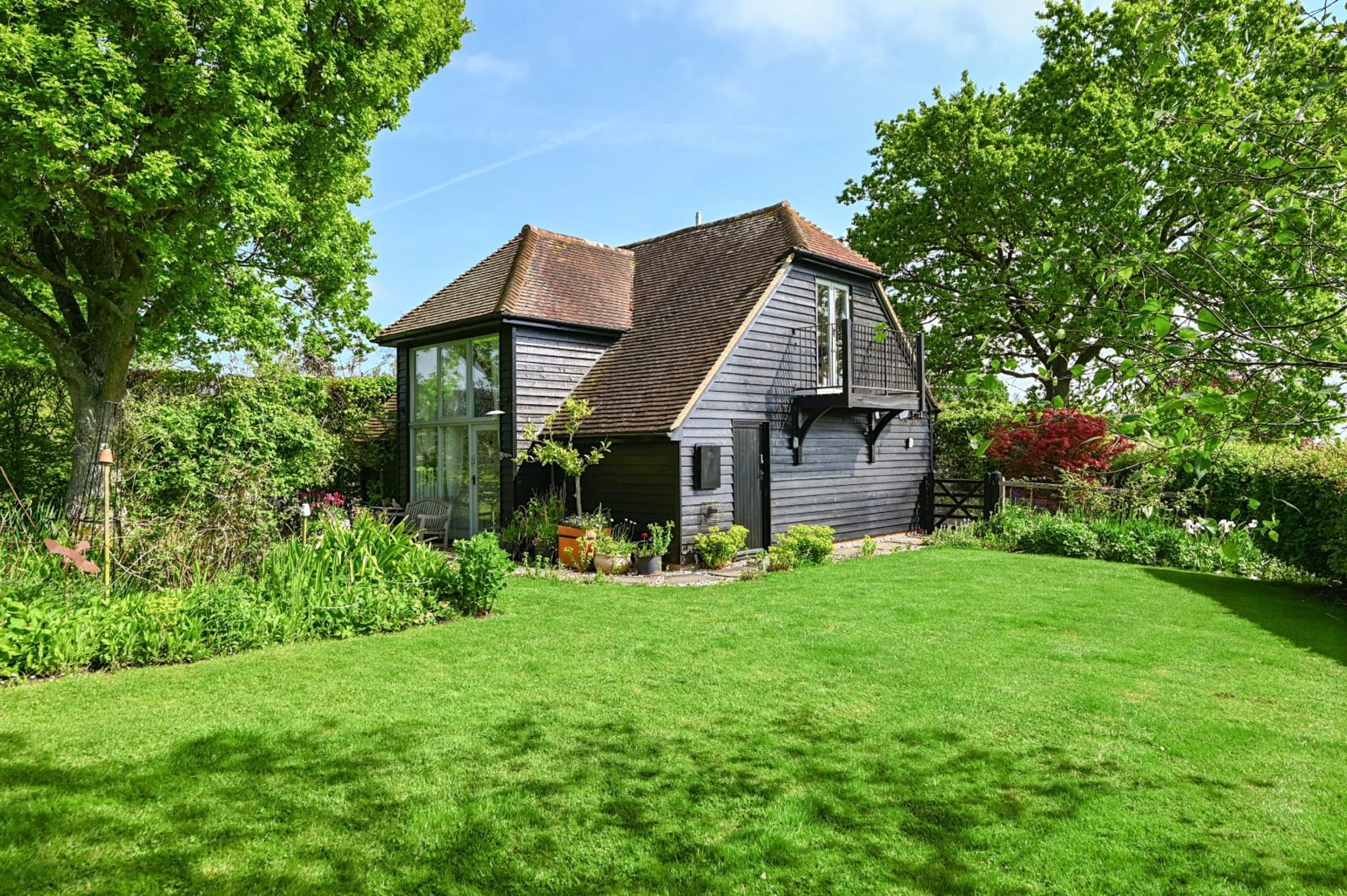 An impressive unlisted detached barn with versatile living accommodation and wonderful loggia, plus the addition of an attractive detached 2 bedroom annexe, all set in glorious gardens and land/fields of just under 3 acres. Situated in a quiet secluded location within the High Weald National Landscape Area with spectacular uninterrupted countryside views. In all 2.93 acres No onward chain