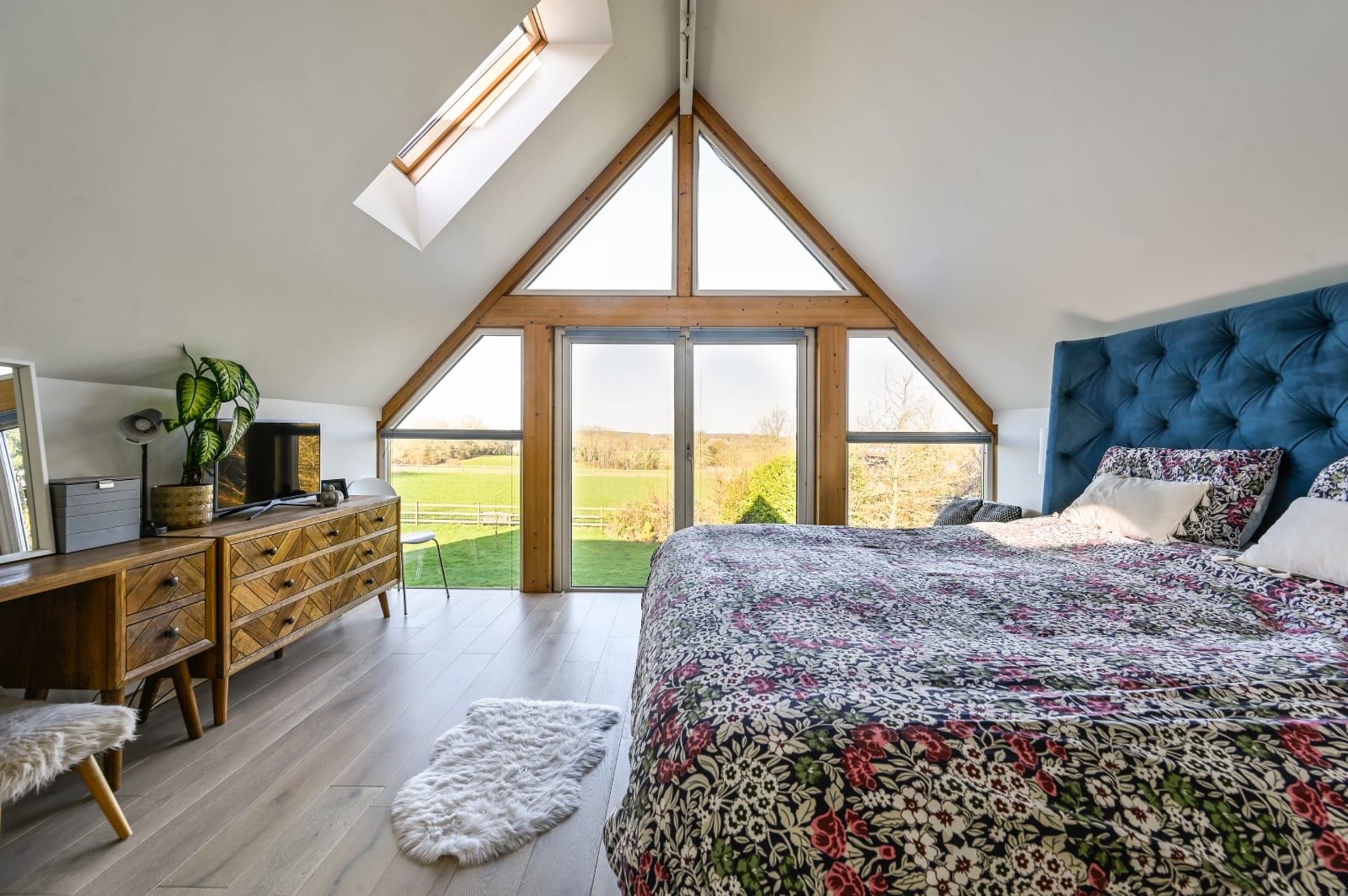 An exceptional and beautifully designed modern country home with a spacious self-contained two-bedroom annexe, set in a privileged North Downs location enjoying stunning westerly views and excellent access to major travel links. In all about 2.12 acres including paddock Area of Outstanding Natural Beauty