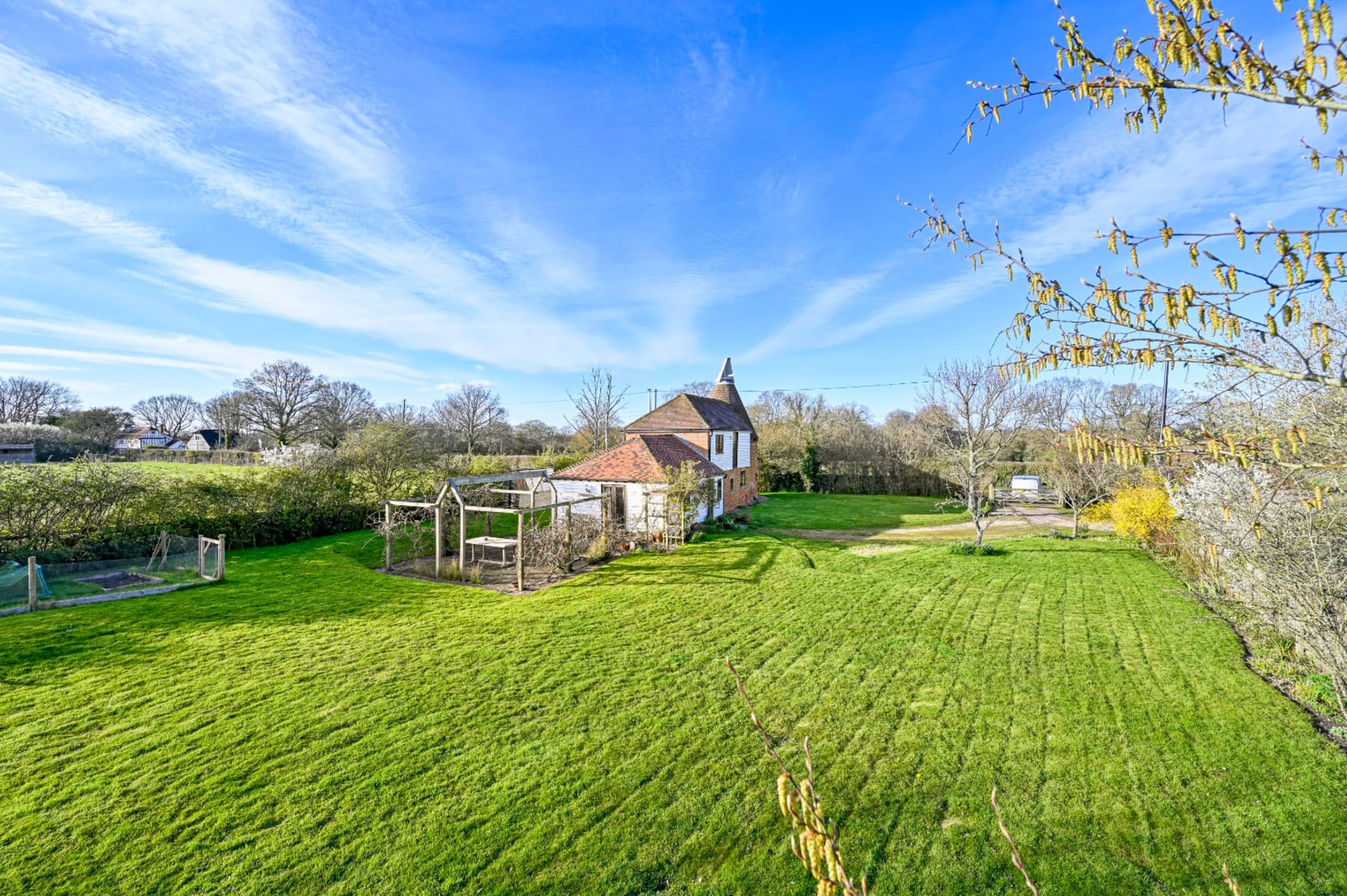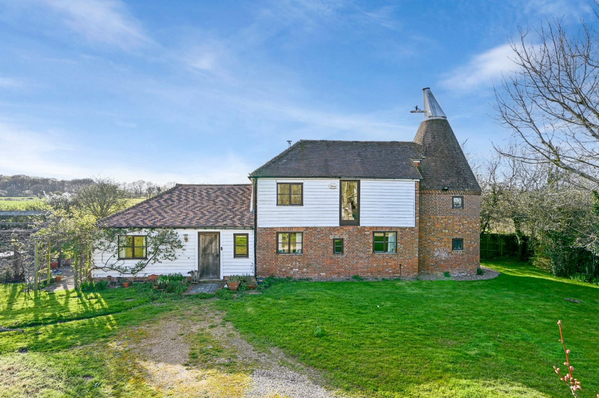 An attractive detached unlisted oast house with quirky upside down living accommodation, a detached double garage and beautiful gardens of around 0.75 of an acre. Located on the edge of this much favoured village and just a short drive to Ashford International (with fast train to London St Pancras only 37 minutes). Location and views are quite breath-taking with some wonderful walks on your doorstep.