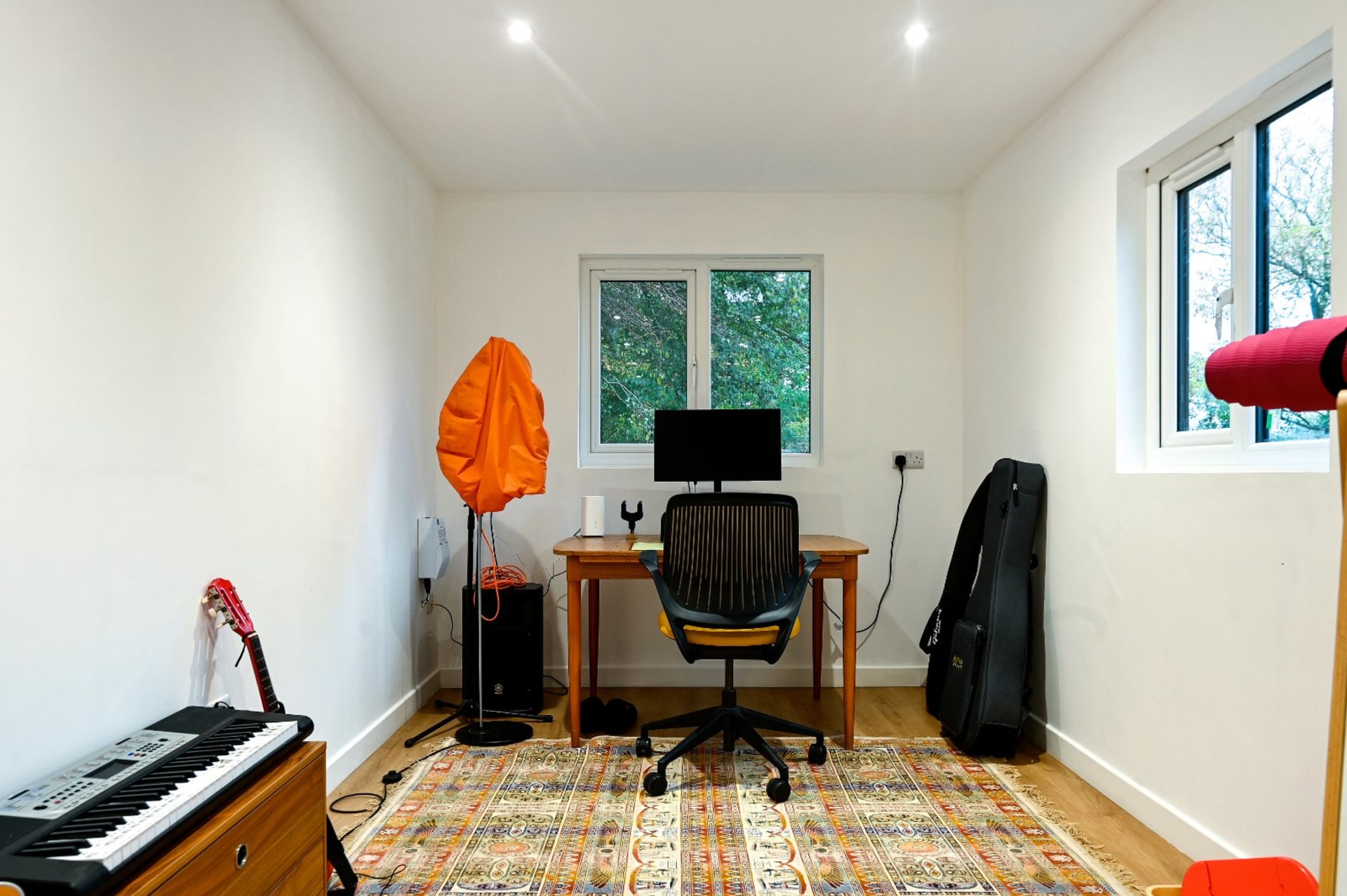 An eco-friendly smallholding with glorious gardens, paddock and numerous outbuildings encircling a stylish, 3 floor, family home. Quiet setting in walking distance to the desirable village of Woodchurch. Combining state-of-the-art energy efficiency with fabulous countryside views, off-road parking and versatile space for everything from entertaining and homeworking to wildlife-spotting, growing vegetables and keeping chickens – or even goats. A modern story of living the good life. Approximately 1.25 acres in total.