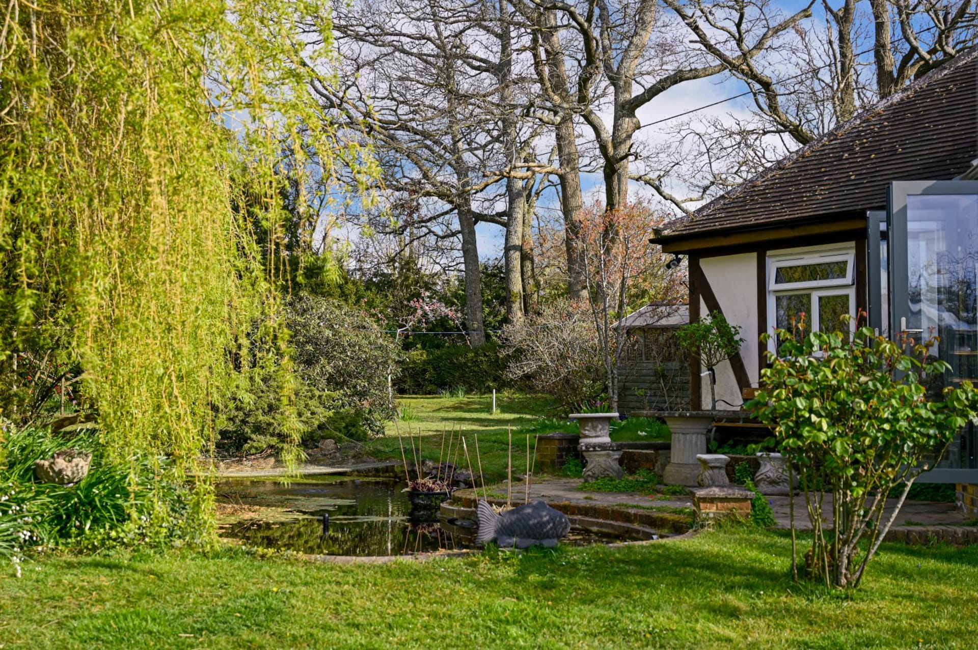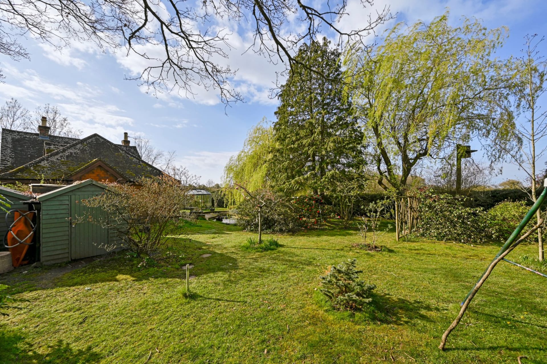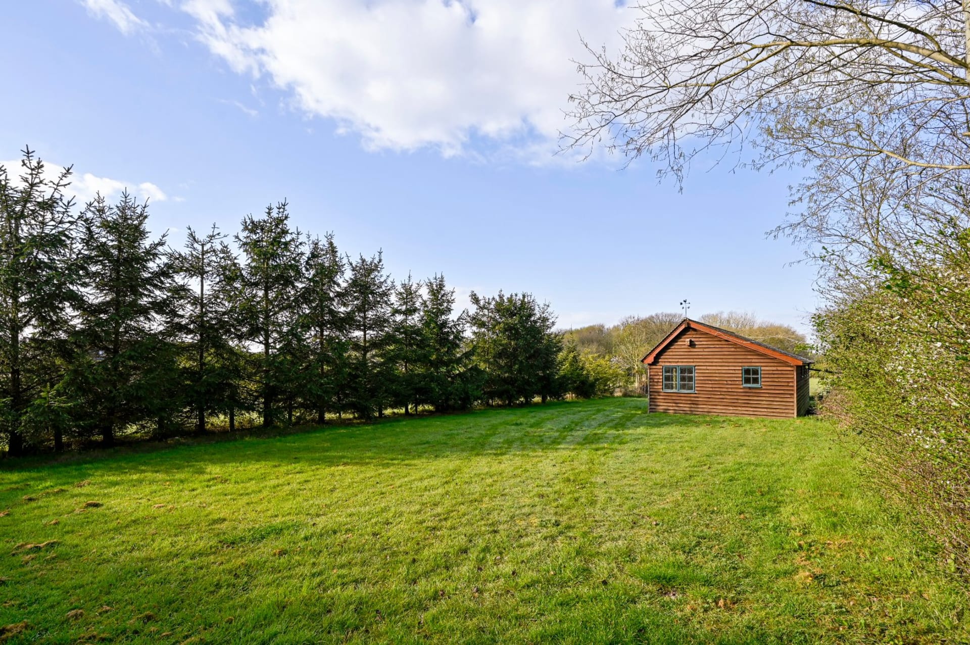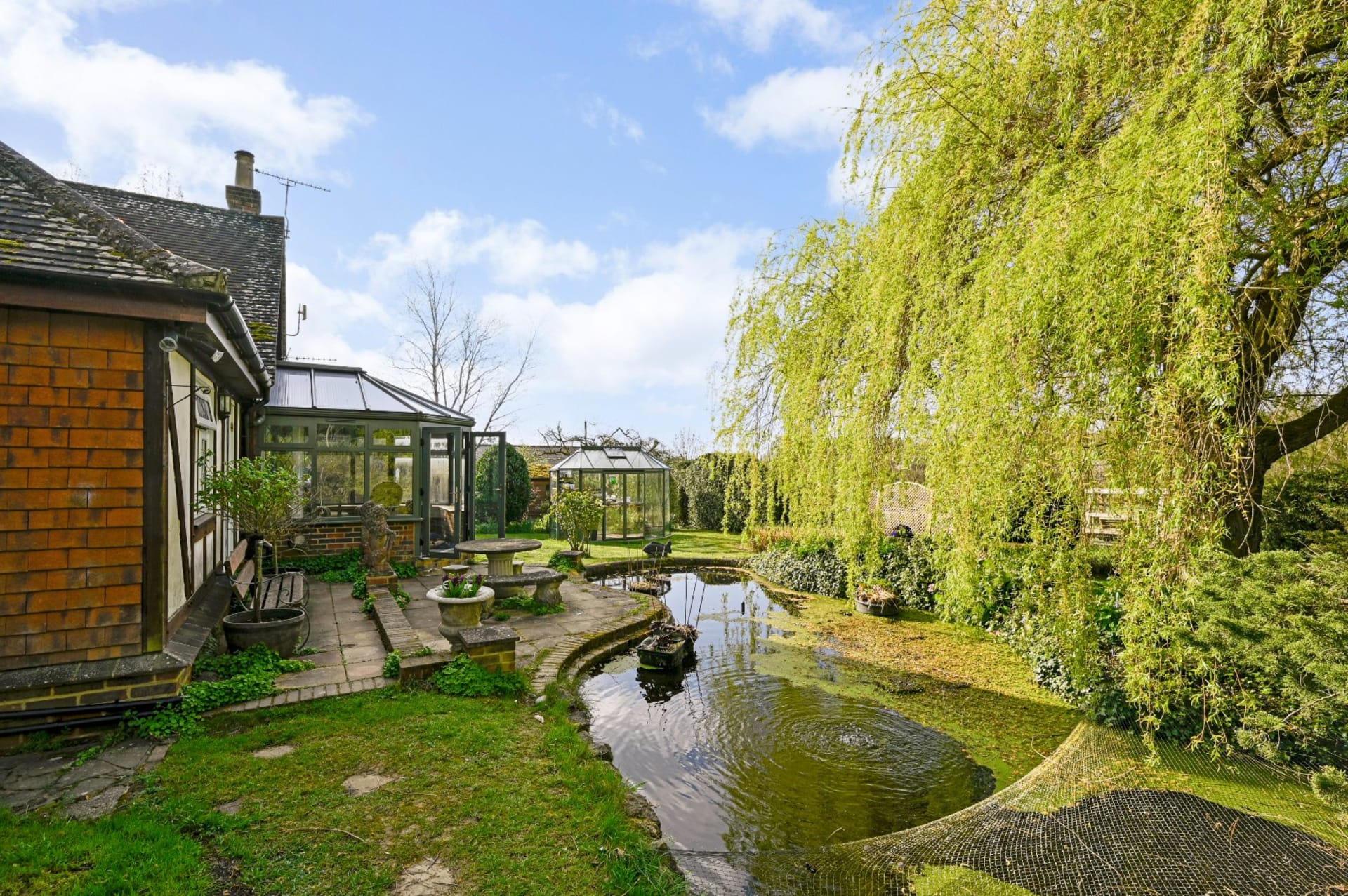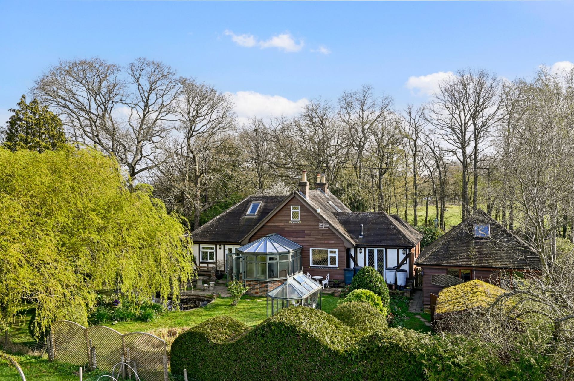 A most attractive former hunting lodge, now a detached character home set in delightful mature gardens and with a paddock, stables/workshop, 3 sheds, detached double garage and off road parking. Located along a country lane and within easy reach of Tenterden and Ashford. In all about 2.02 acres.
