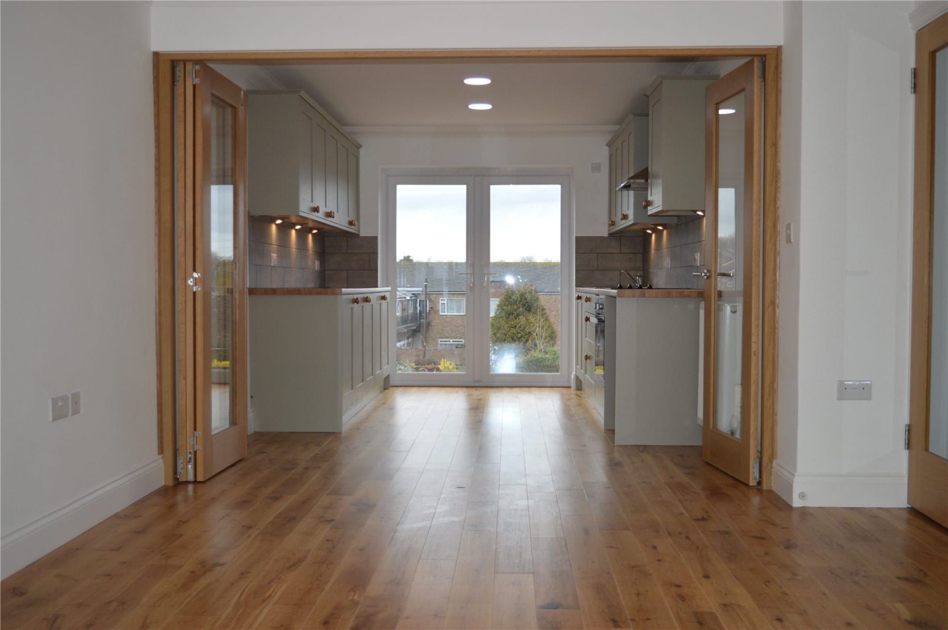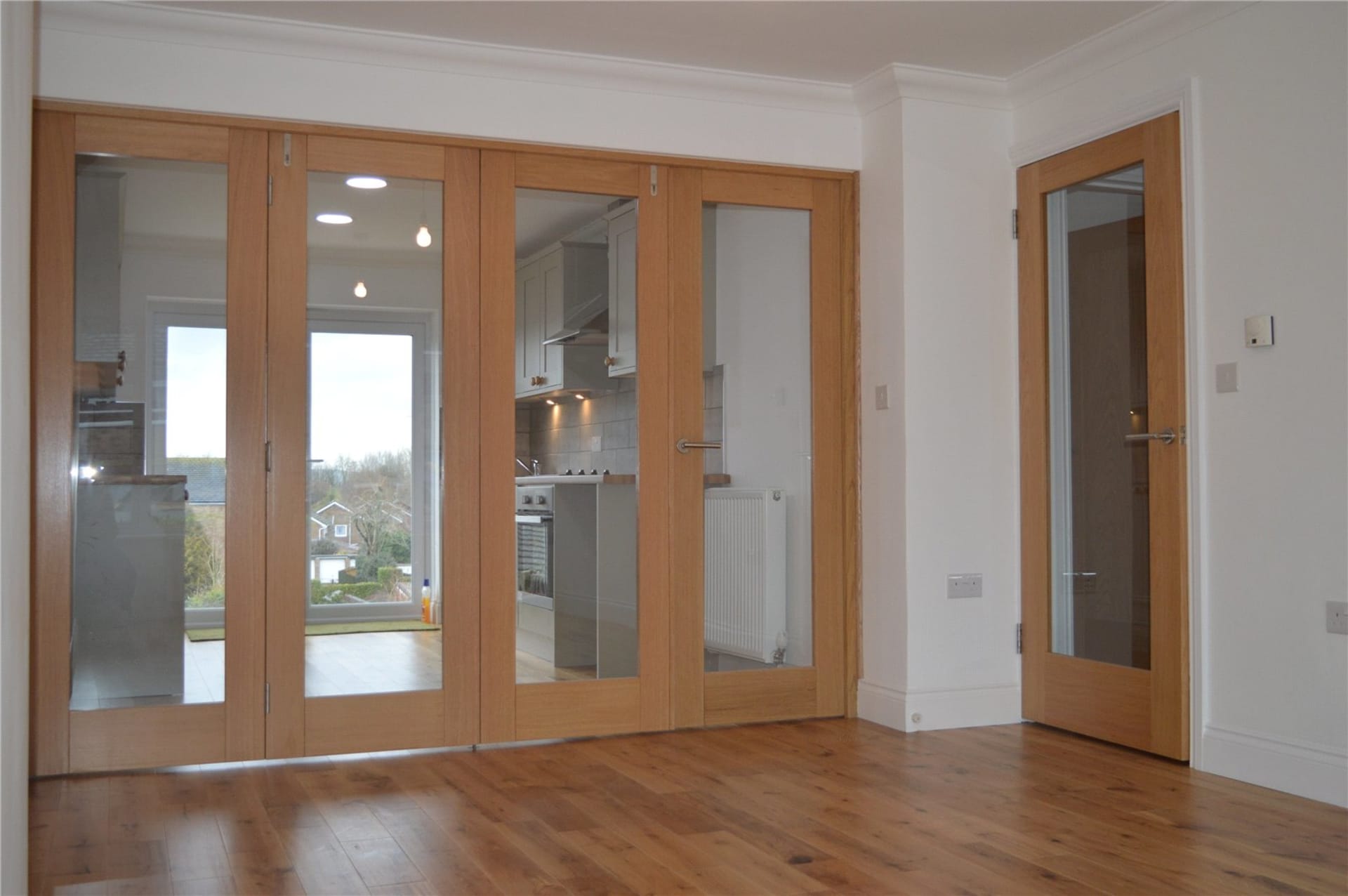 This bungalow has been given the all star treatment with an extension offering accommodation that comprises full width living space with bi-fold glass doors separating the kitchen from the living room, French doors from the kitchen directly onto a raised patio/balcony area with glass and steel balustrade, two double bedrooms with built in wardrobes and the master with a double shower cubicle and a separate bathroom. The entire property has been completed to an exceptionally high standard to include oak flooring and bi-fold glass doors. Externally there are gardens to the front with off road parking for 2 vehicles and a good sized garden to the rear overlooked by the raised patio/balcony. Storage needs are well provided for with space under the raised patio and a garden shed. Counci Tax Band C. Deposit £1442.00.