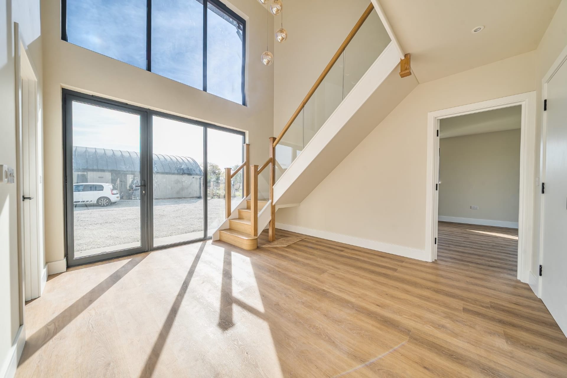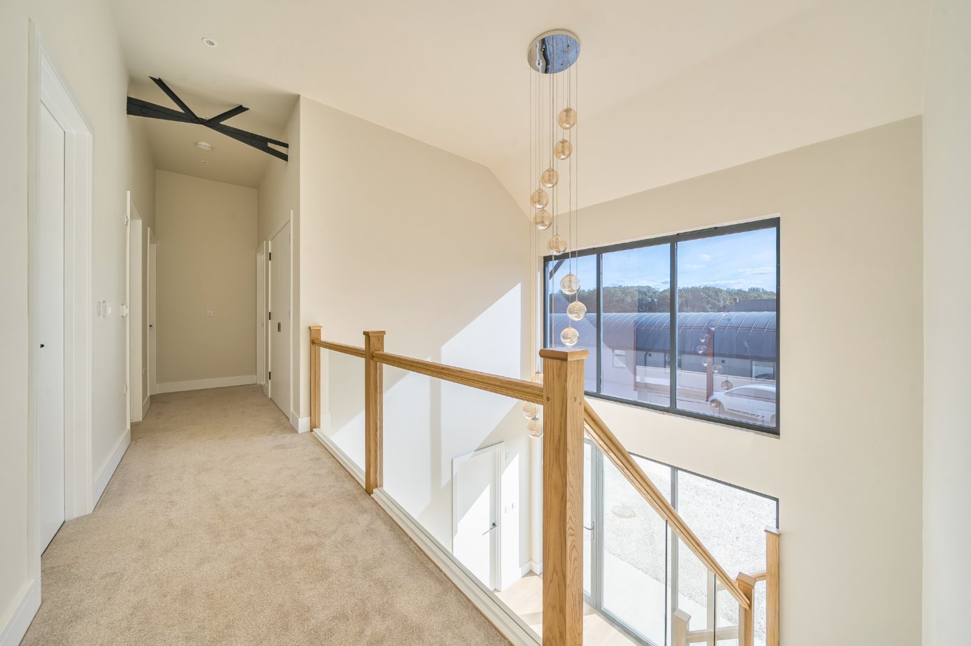This spacious house offers beautifully presented accommodation including large windows offering views over the fields and woodlands beyond. The large entrance with open vaulted ceiling leads to a large open plan living and dining room, kitchen with induction hob, separate utility room and a study. Additionally, there are five bedrooms (two with en suites) and two further bathrooms. Externally there is a garden with patio and parking for two vehicles with an electric charging point for one vehicle. Council Tax Band F. Deposit £2884.00.