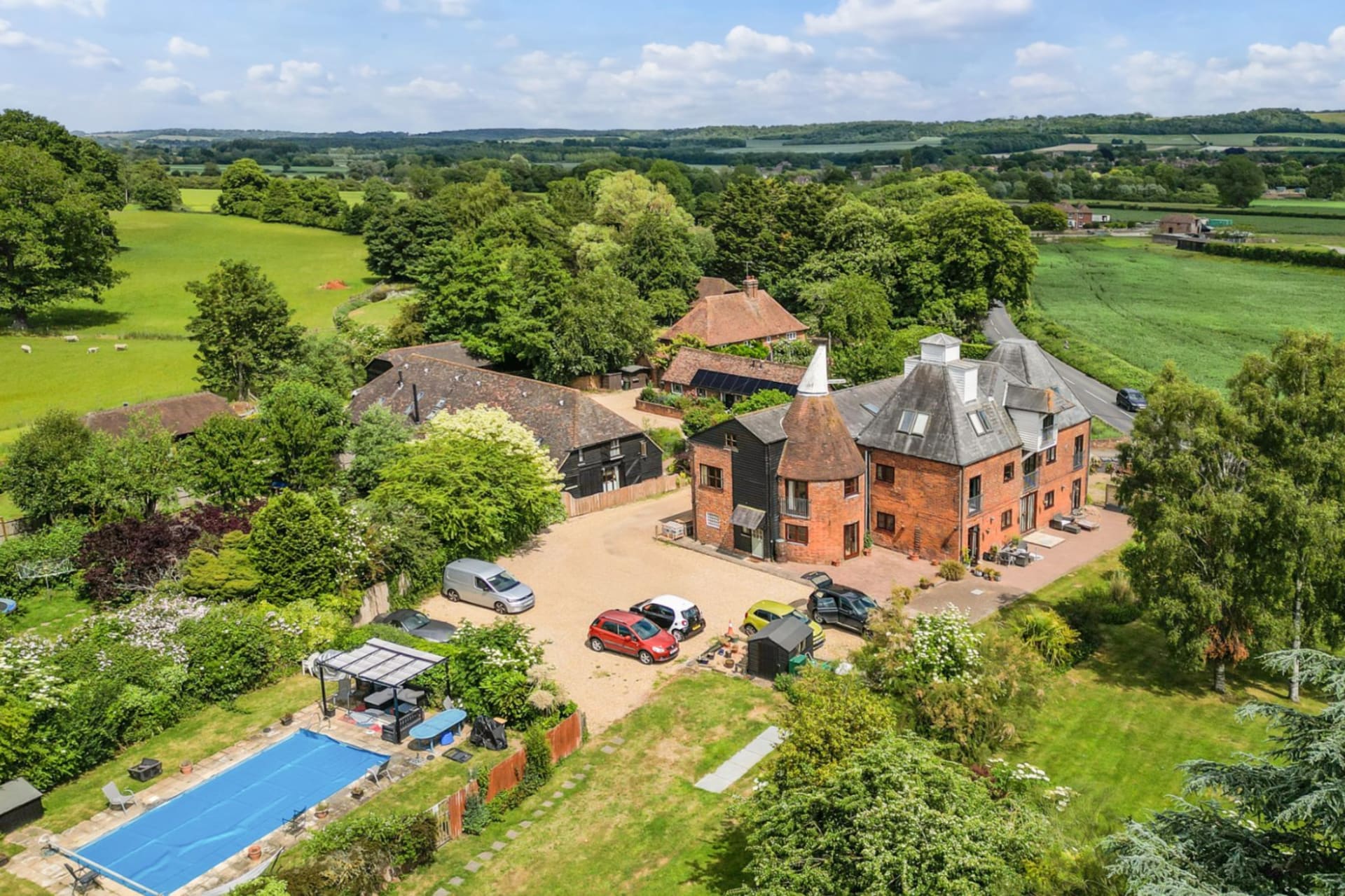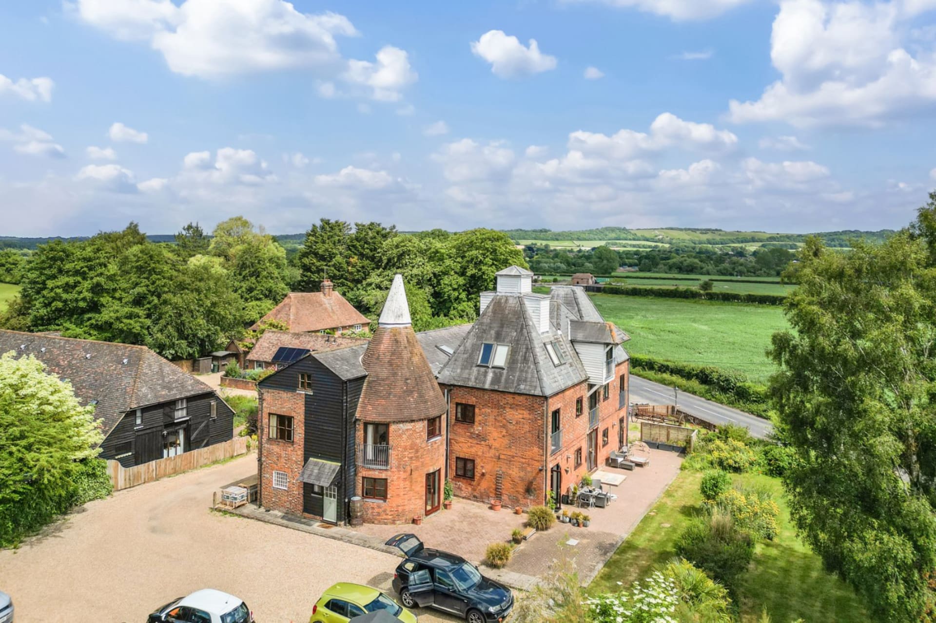 A distinctive 3/4-bedroom Kentish Oast house, originally built circa 1890 and converted in the 1980s, retaining period features like cowls, vaulted ceilings, and exposed beams.
