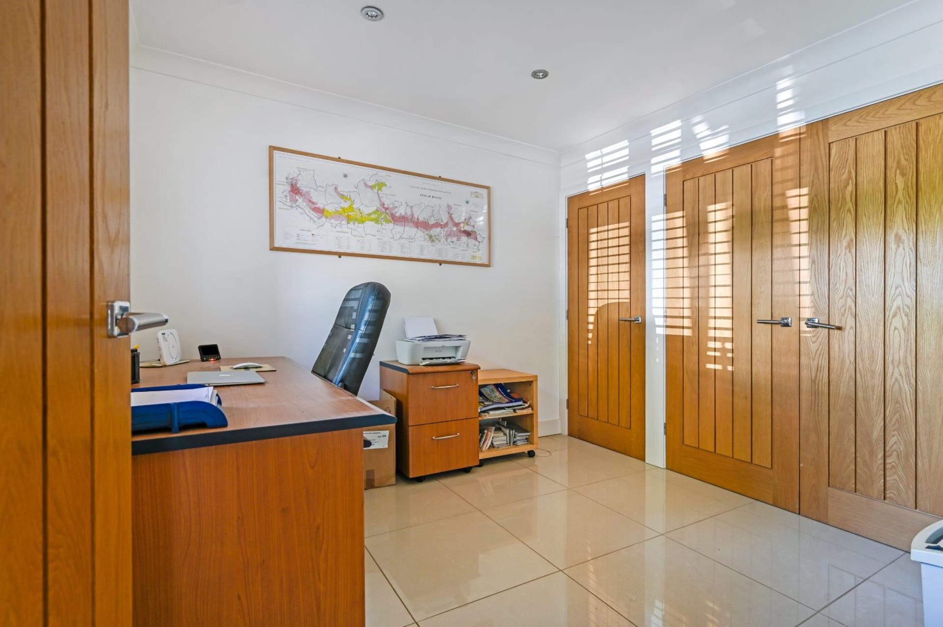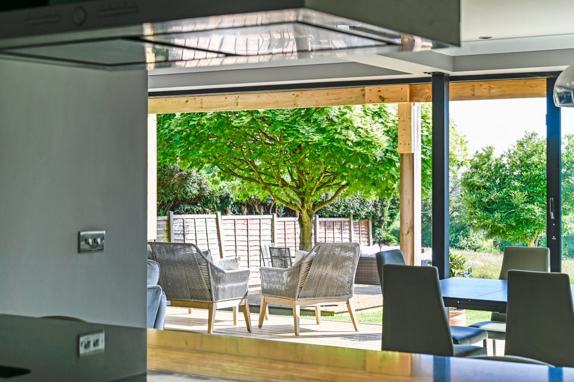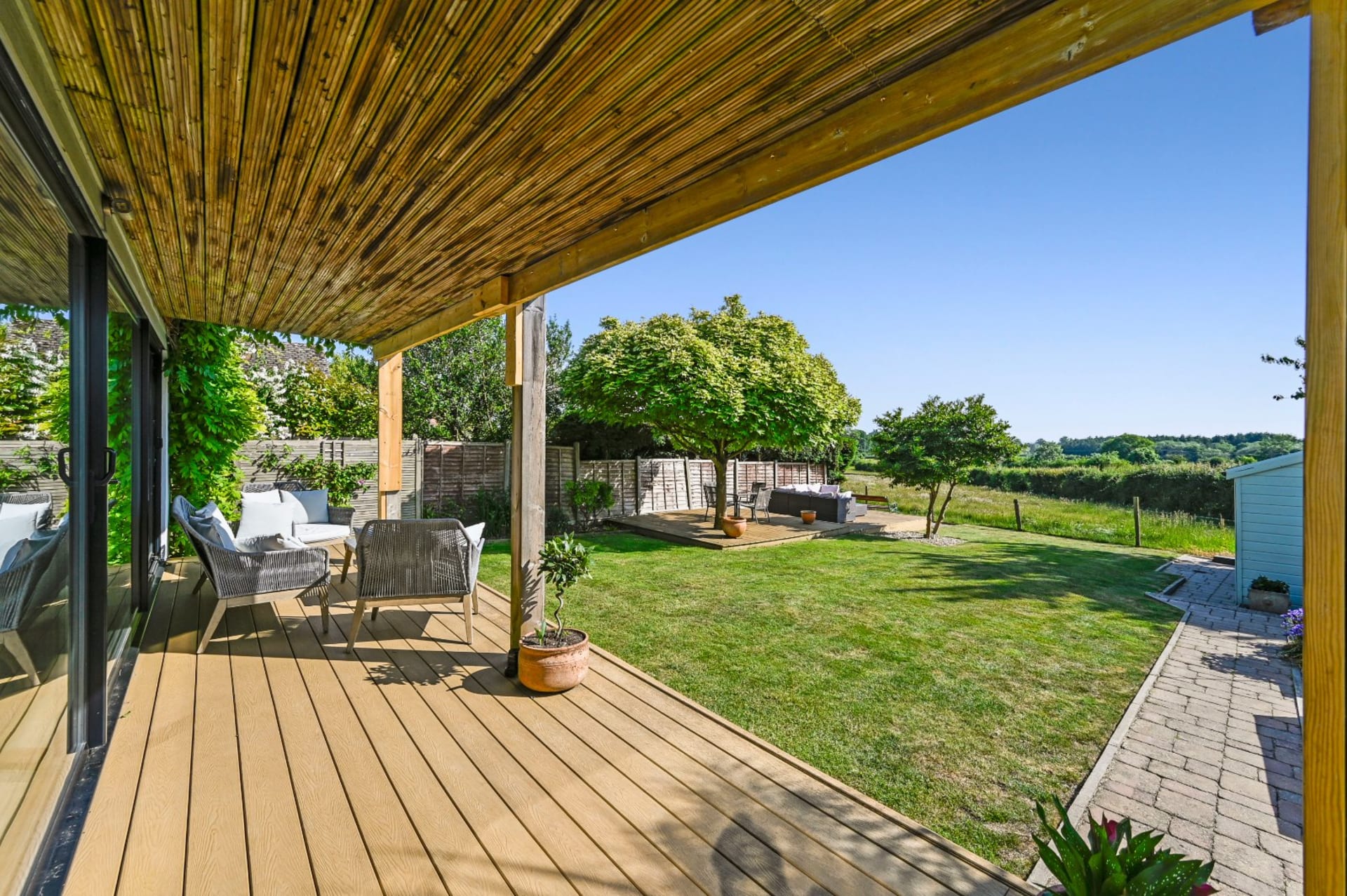 A Striking Contemporary Home with Glorious Countryside Views. Set amidst unspoilt rural surroundings, this distinctive and beautifully presented chalet-style home offers a wonderful blend of contemporary design and generous open-plan living, arranged over two floors with thoughtfully considered architectural details throughout. One of the home’s most notable features is the full-width, glazed ground-floor elevation which floods the principal reception space with natural light, while the superb principal bedroom suite enjoys direct access to a substantial private balcony – a perfect spot from which to take in the far-reaching views across surrounding farmland.