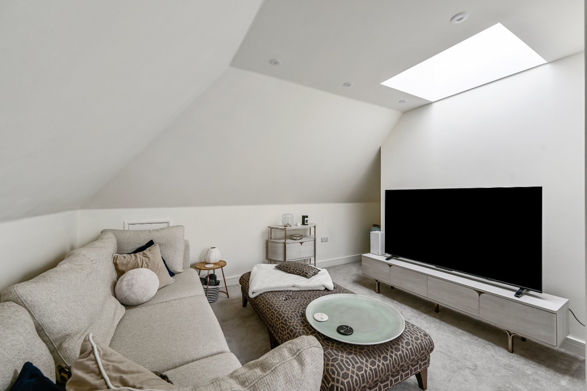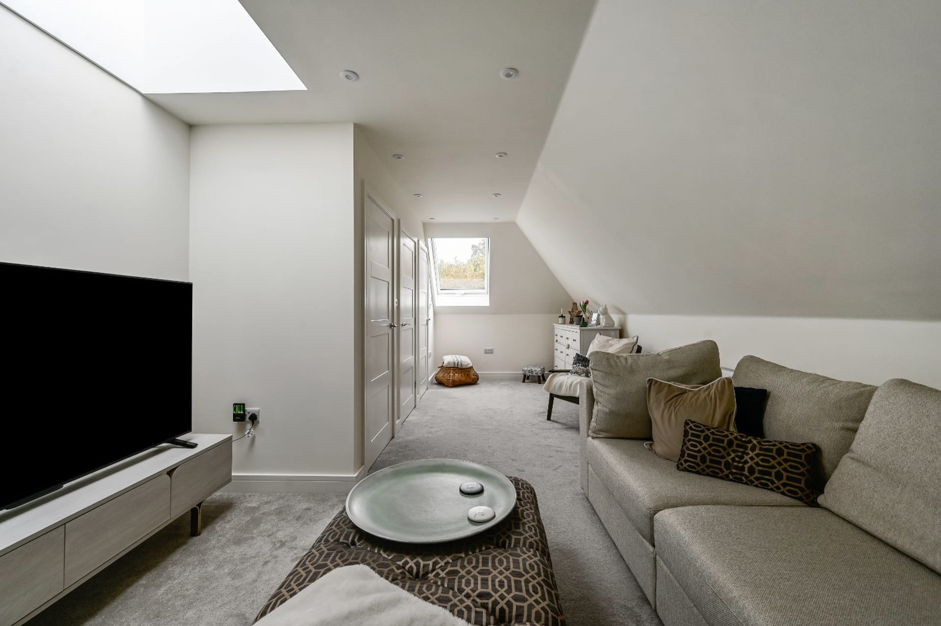 - Spacious open-plan layout featuring a contemporary kitchen with quartz worktops, cabinet lighting, and integrated Bosch appliances.