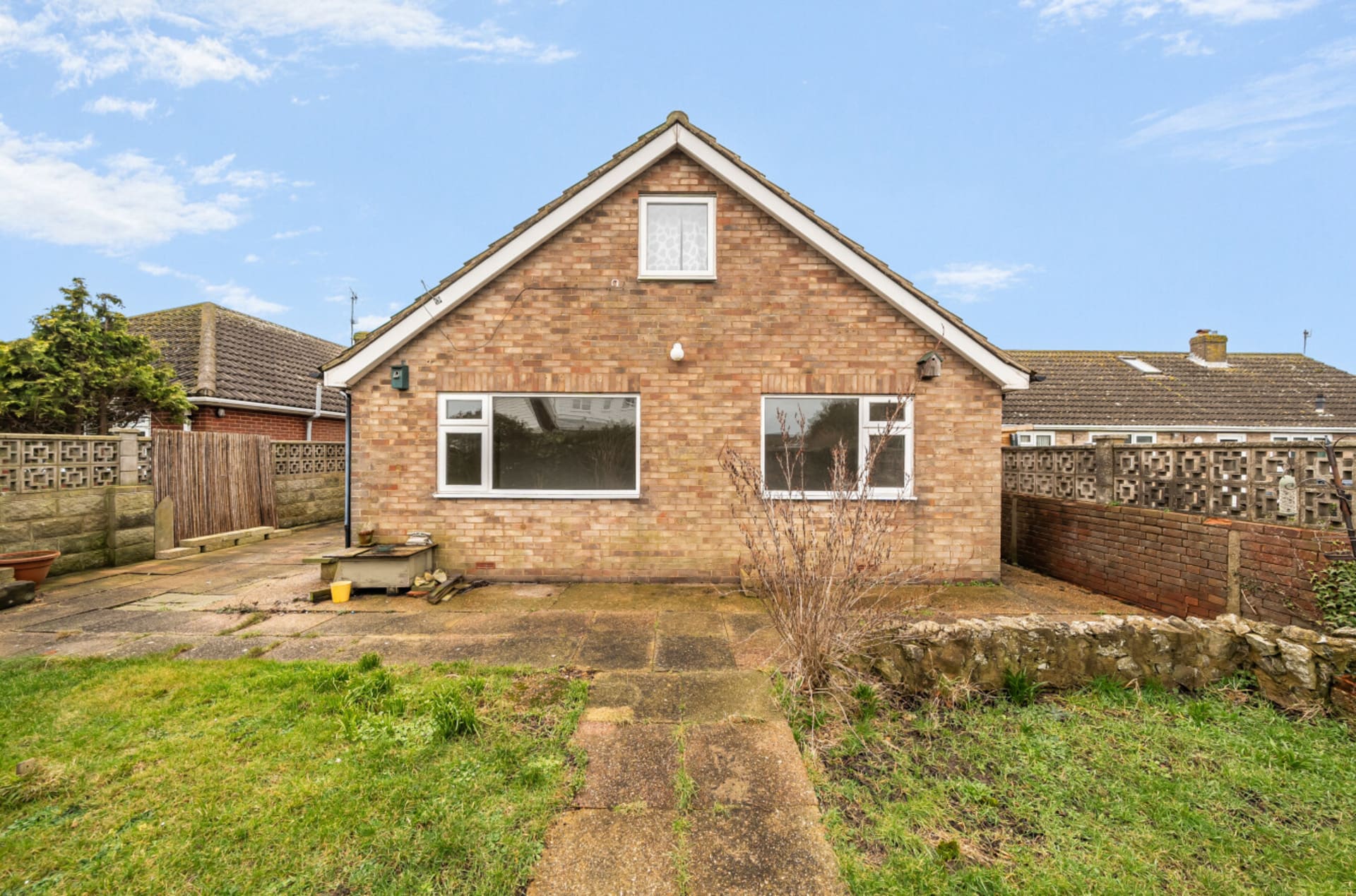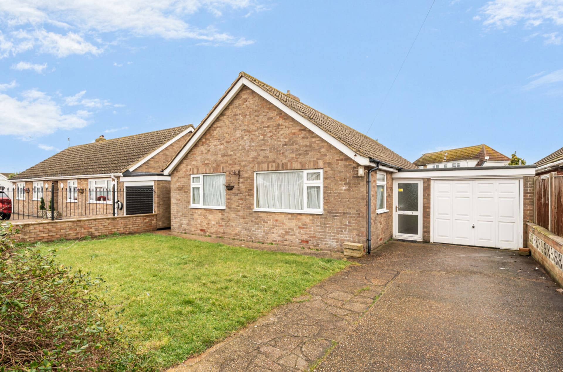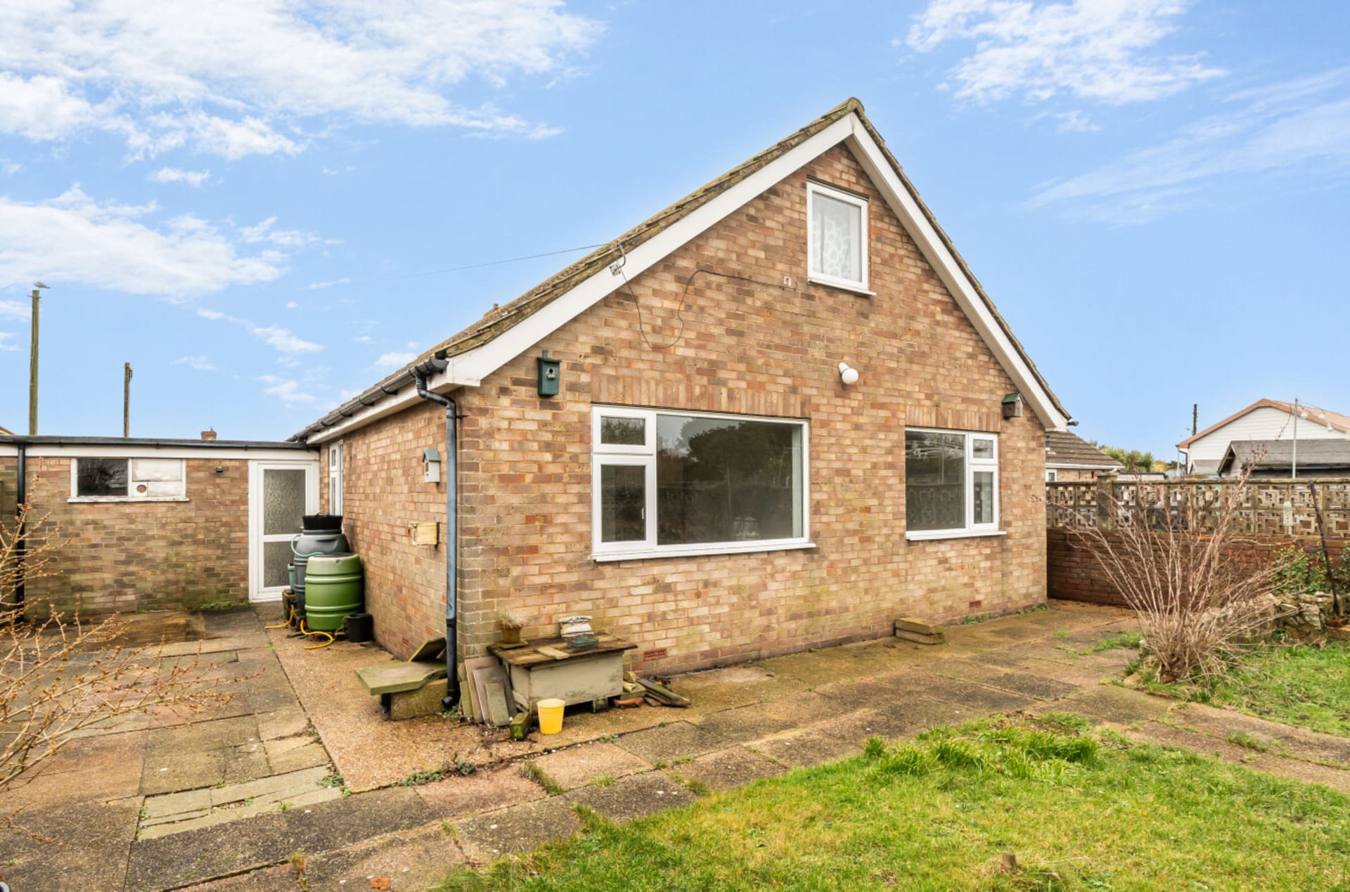 A detached three-bedroom bungalow featuring a generous open-plan lounge/diner, driveway and garage to the front. The property requires some improvement and is conveniently located close to the beach, with no onward chain and a short drive to New Romney.
