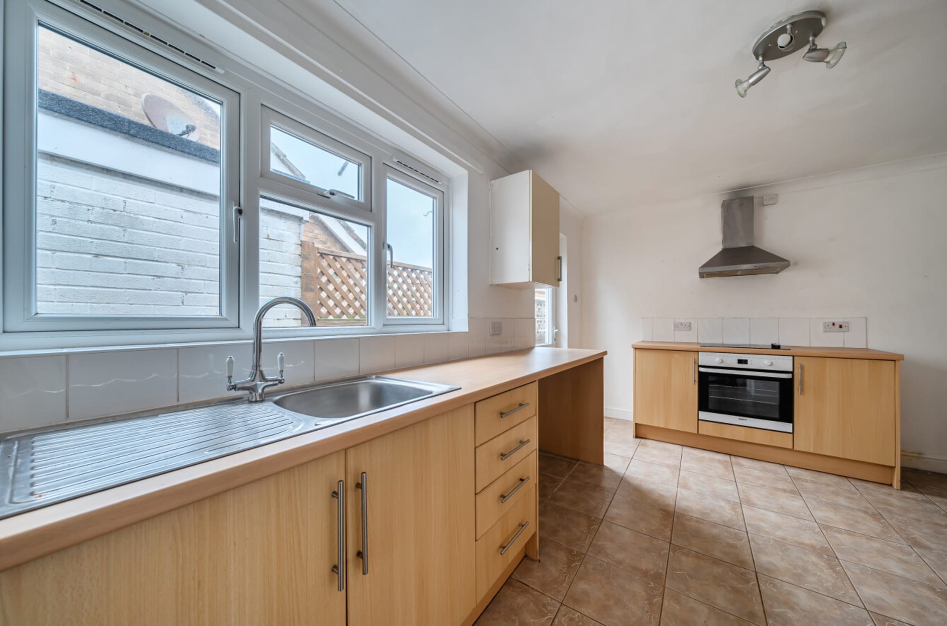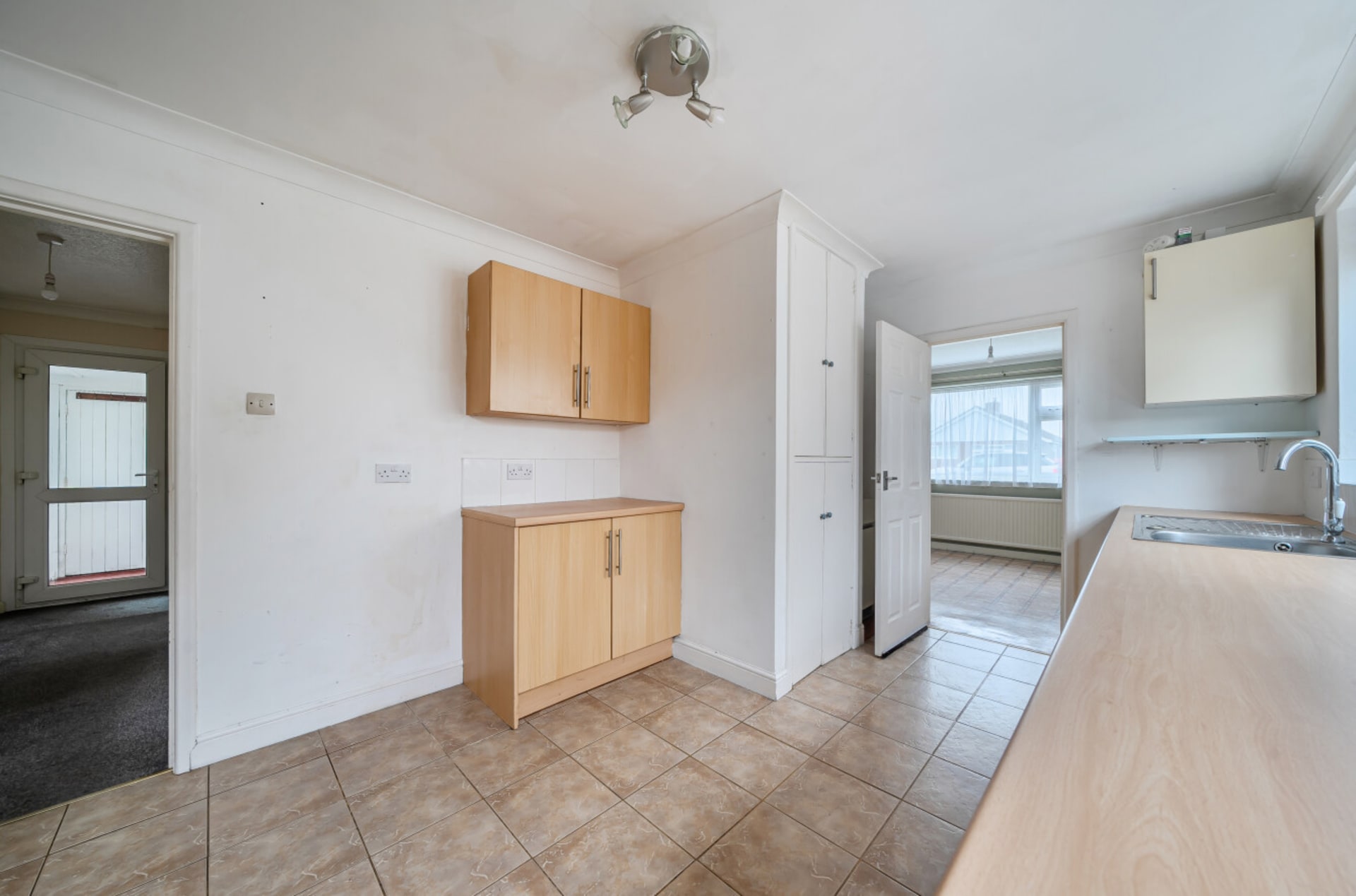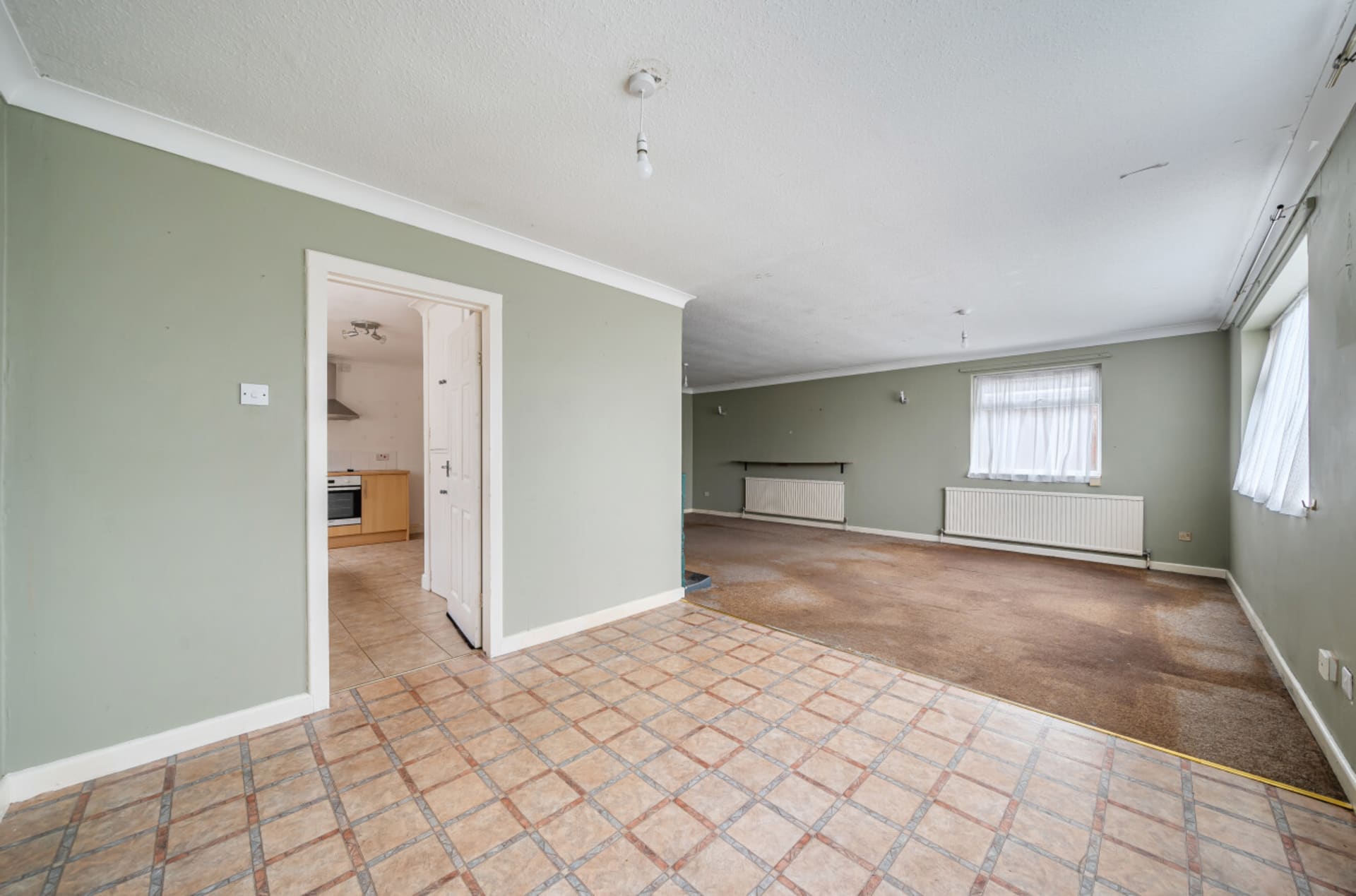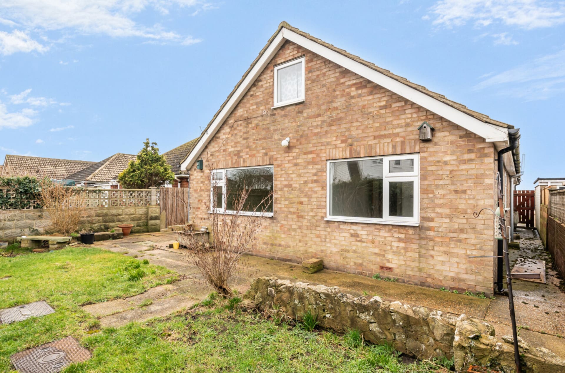 A detached three-bedroom bungalow featuring a generous open-plan lounge/diner, driveway and garage to the front. The property requires some improvement and is conveniently located close to the beach, with no onward chain and a short drive to New Romney.