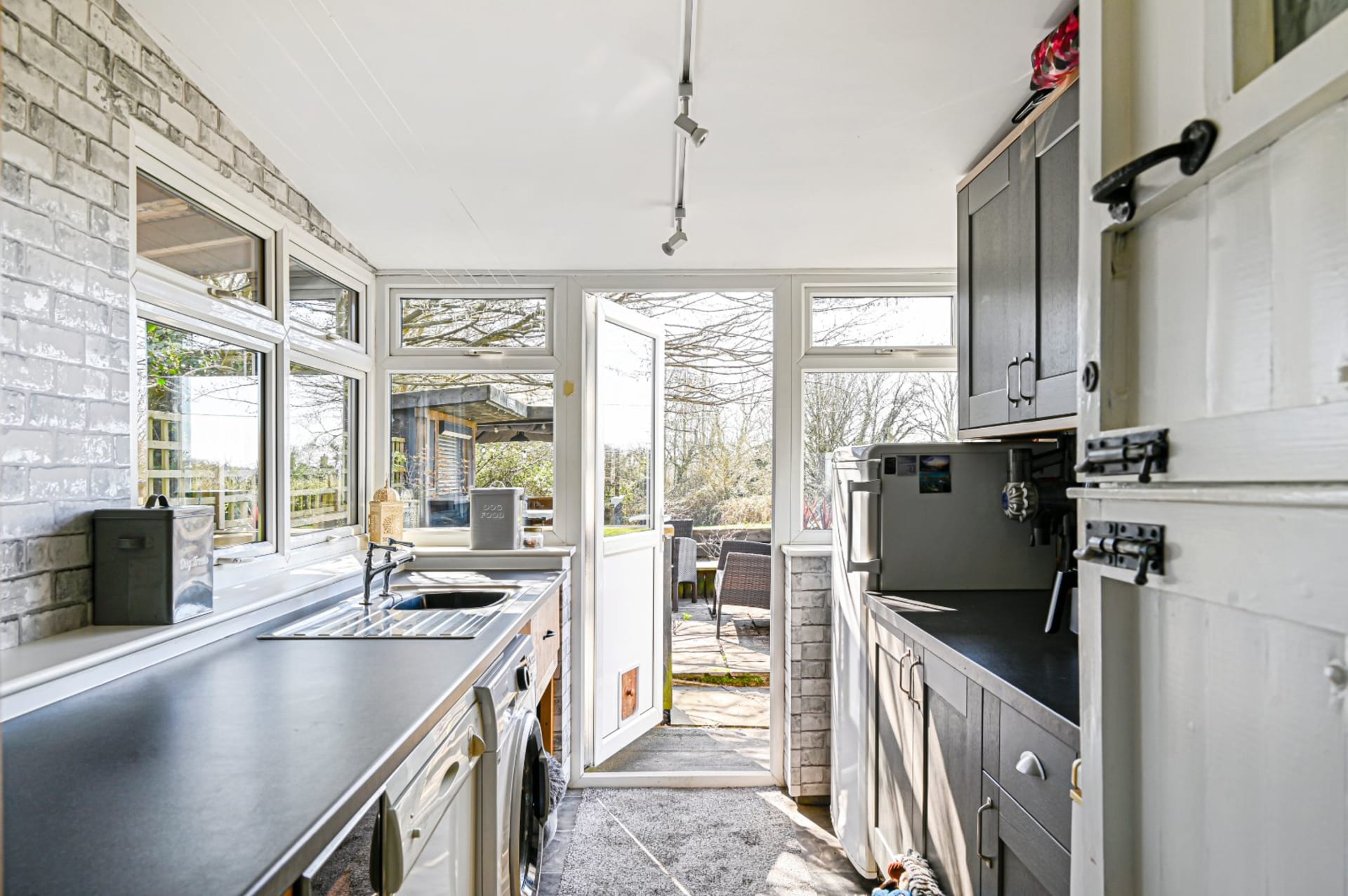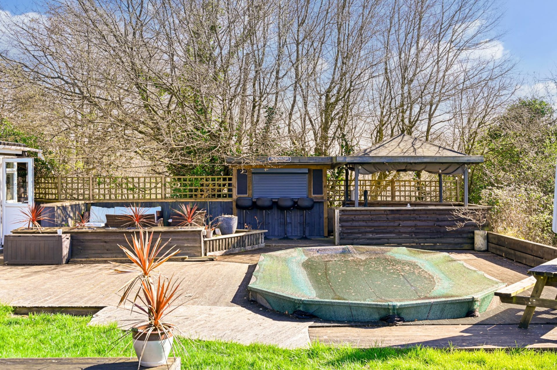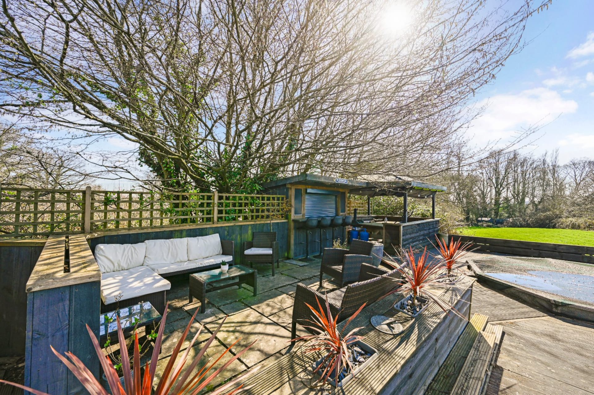 - Long rear garden with outside bar and pool